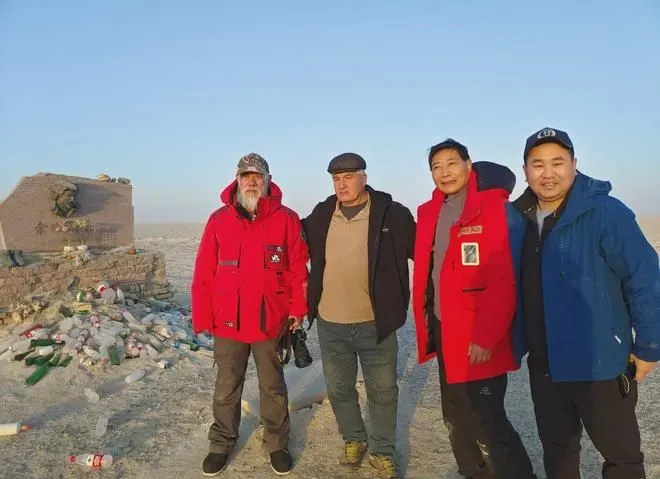 与三位徒步横穿塔克拉玛干沙漠的探险家和负责后勤保障的同事们告别后,我们准备从米兰出发经235省道原路返回罗中镇,去罗布泊无人区深处看望几位老朋友。吃完早饭准备出发前,马挥老师把我叫到一边:小刘,你去帮我买四瓶酒,这个钱算我个人的,别算到公账里,也别开发票了,到时候到了老哥几个墓前,我陪他们好好喝几杯。