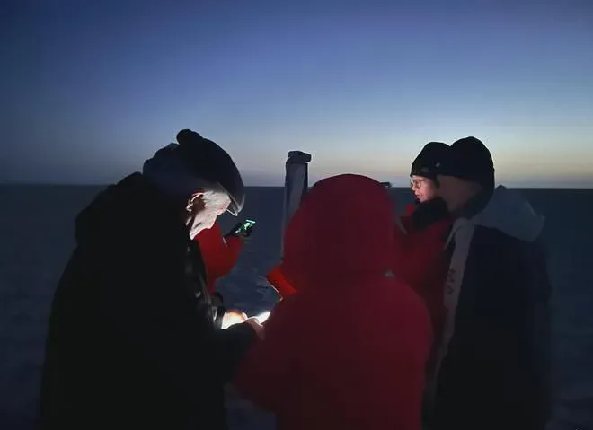 我们拿出随车携带的卫星电话,拨通了赵工爱人以及陈宗器老先生女儿陈雅丹的电话,告诉他们老朋友来罗布泊无人区看望他们的家人了。最后我们把墓碑附近做了简单的打扫,通过鞠躬或者叩头的方式分别表达对老朋友/老前辈的敬意与思念,把提前买好的酒倒在墓碑前。此时天色已晚,再赶往彭加木失踪纪念地已不现实,我们决定先赶回罗中镇住宿。