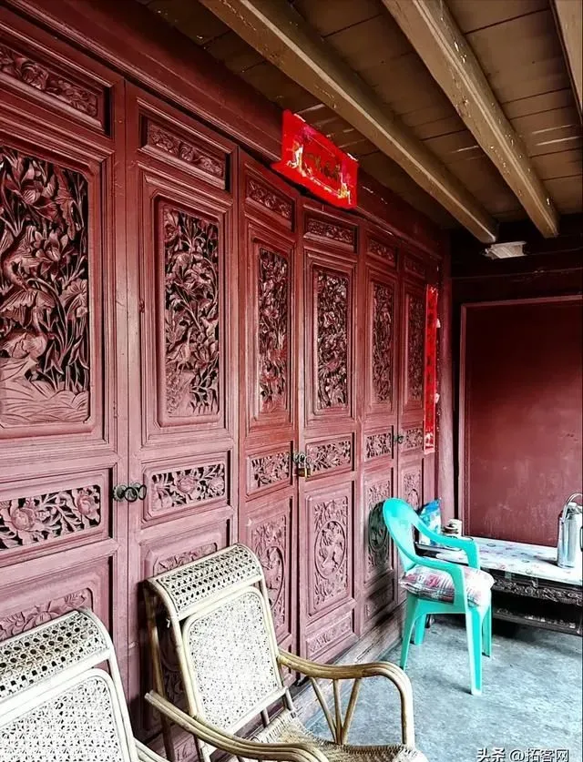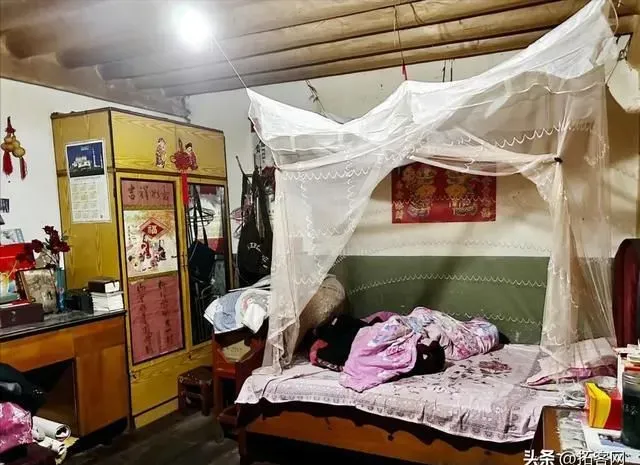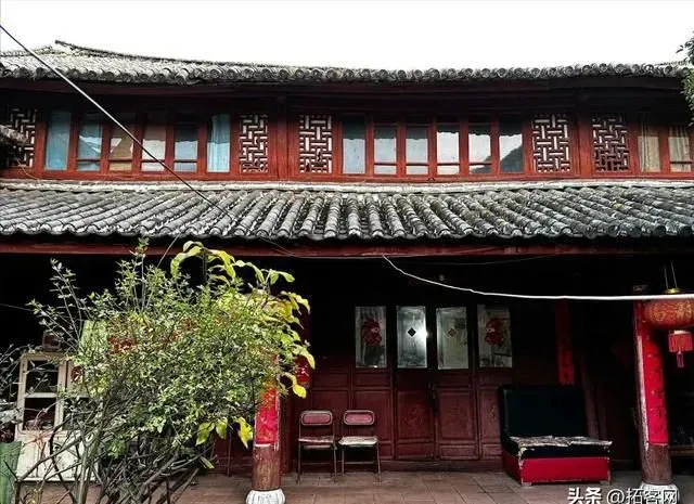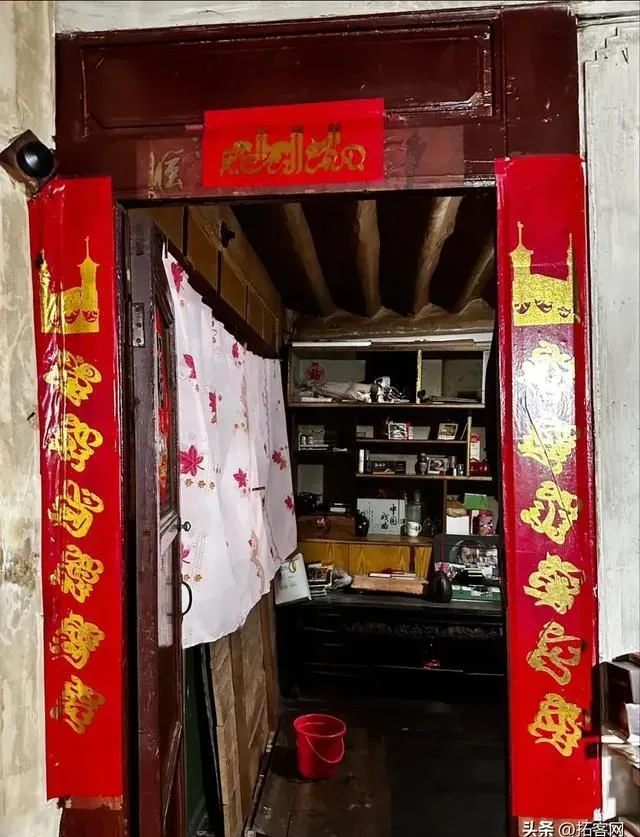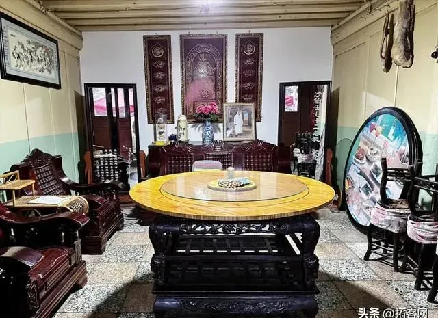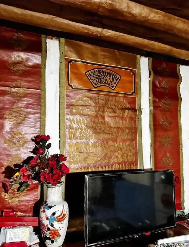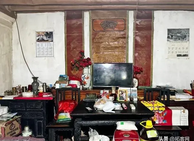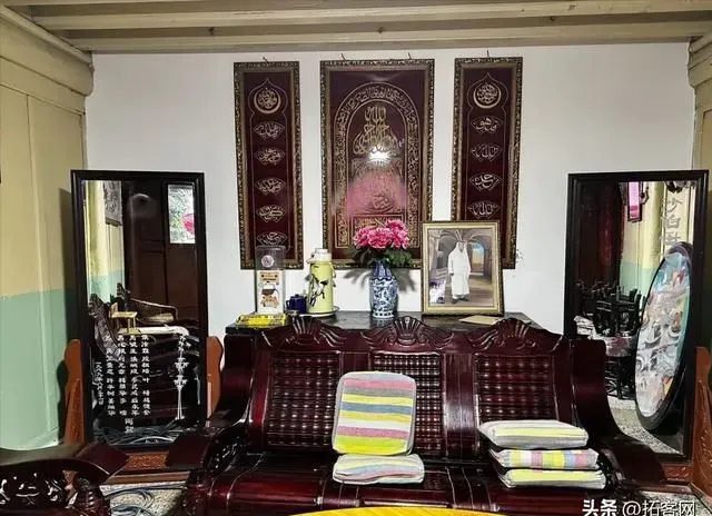 沙家大院的西厢房内部,中间是客厅,挂着大理巍山风格的传统书法中堂,沙家的爷爷晚上就在这里看电视。两边是卧室,里面挂着天方图。