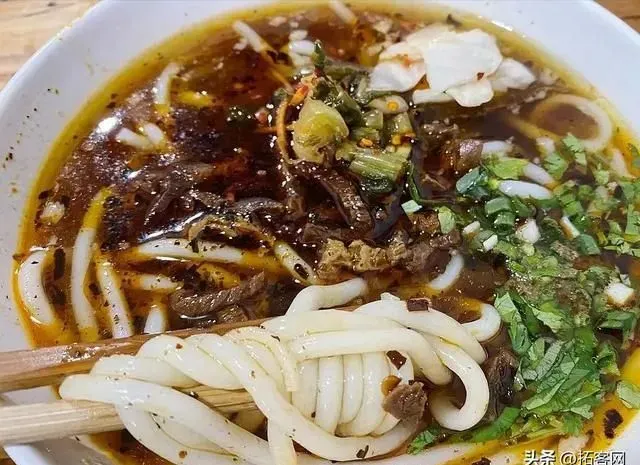 纳峰清真小吃店是一家本地人吃的老店。点了碗杂酱卤饵丝加红烧帽子,饵丝的口感更糯一些,没有米线那么劲道。