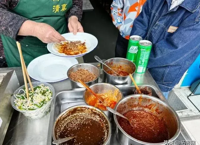 西大街本地回民做的牛肉炸酱饵块,各种酱料味道不同,可以吃甜的也可以吃辣的,邻居小孩特别喜欢。打包一份饵块在路上饿了吃也很方便。