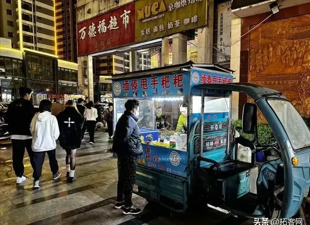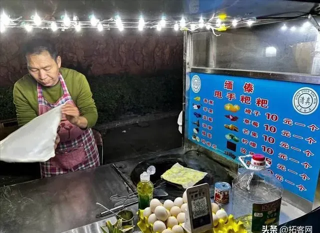 正阳时代广场的街边摊,吃个菠萝味的缅甸巴拉达(Palata)。Palata源自印度饼Paratha,传入缅甸后加上糖做成了一道小吃,云南回民马帮将这道小吃带回了家乡,成为了甩手粑粑。