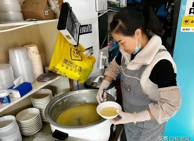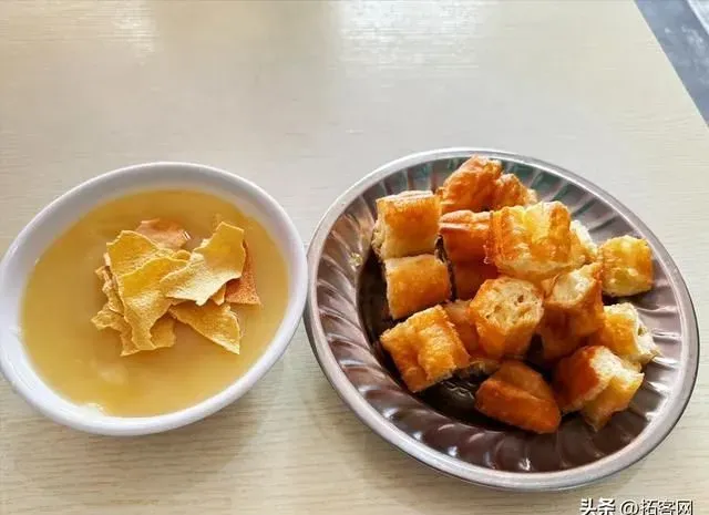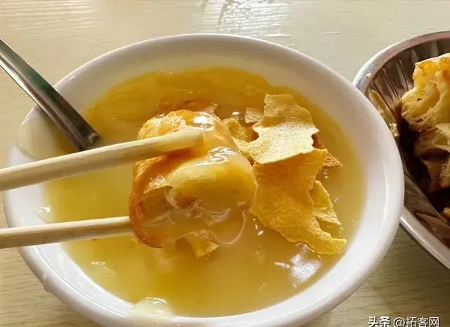现炸的油条又酥又脆,蘸一下稀豆粉味道很丰富。红糖水煮鸡蛋有一种温暖的感觉,早餐吃正合适。