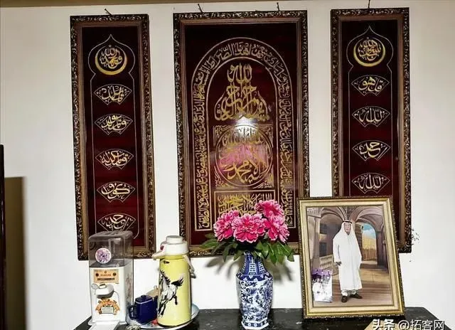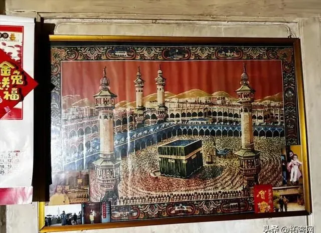 墙上还贴了一张云南回族画家王国文哈吉的画,上面有一个戴着奥斯曼Fez帽的小男孩,这个非常有意思,我推测应该和1931年后云南回教俱进会组织学生留学埃及艾资哈尔大学有关。1829年奥斯曼王朝推行帽子改革,下令官员禁止缠头一律戴Fez帽,Fez帽之后就在奥斯曼统治下的埃及流行开来。