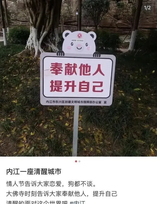 在这里,情人节整活只是基本操作;从内江路边的普通标语,更能得以看出内江的叛逆日常。