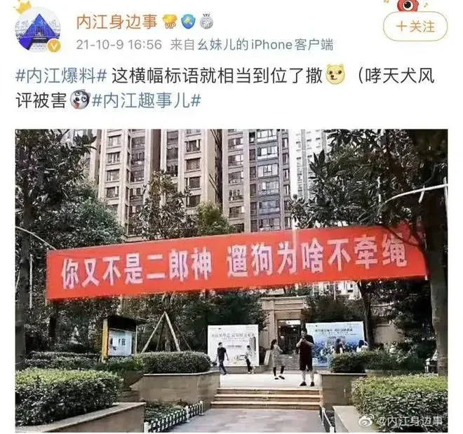 内江有人遛狗不牵绳——