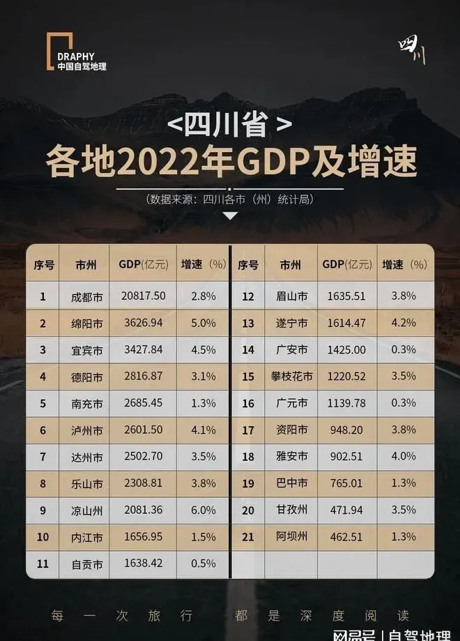 四川各地2022GDP及增速示意图,制图@《中国自驾地理》