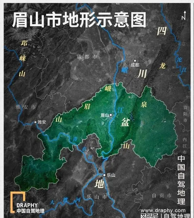 眉山市地形示意图,制图@《中国自驾地理》