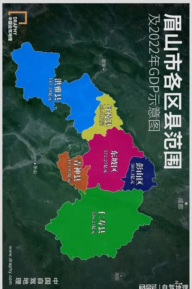 眉山市各区县2022GDP示意图,制图@《中国自驾地理》