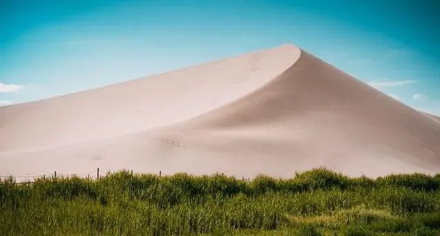 我看见一对恋人还在月牙泉边盘桓。姑娘穿一袭淡蓝色的裙子,倚着一棵白杨树,等待男友为她照相。裙裾飘飘,衣带飞扬。也许,在那个美丽的时刻,她的心里正酝酿着一个飞天的梦想吧?然而,月牙泉不会记住他们。
