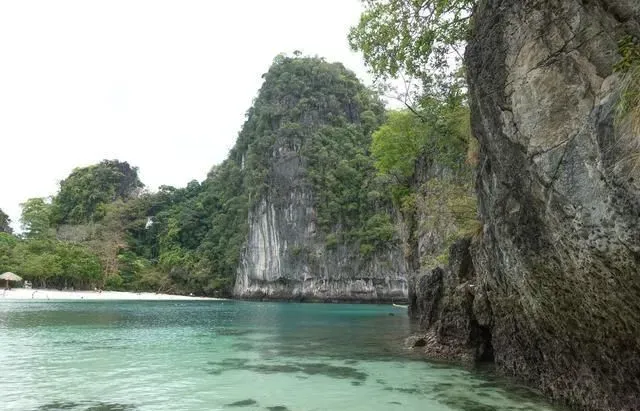 在这个岛上,我看到了一个惊艳的环礁湖。这个湖的水清澈见底,四周被树林茂密的石灰岩山包围,给人一种海上“小桂林”的感觉。当我欣赏着这个湖时,我仿佛忘记了这个岛的名字,只觉得它是一个天然的美景。