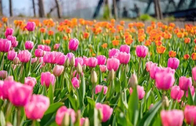 在金华市区燕尾洲公园,4万多株郁金香即将进入盛花期。一朵朵郁金香争奇斗艳,绽放着自己独特的风姿。这片花海的花期可持续至3月初,是金华人春日打卡的好去处。