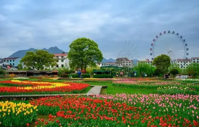 花园村·天香湾是浙江省首个单独以村为单位创建成功的国家AAAA级旅游景区,有牡丹、芍药、月季、玫瑰、荷花、菊花等花海,桃、梨、梅、李、桑等果林,花海果林相映成趣,丘陵水系错落有致,漫步其间便是与春天相伴。如今,漫山的桃花已经盛开,成片的梨花、芍药、玫瑰、月季即将组成七彩花海。