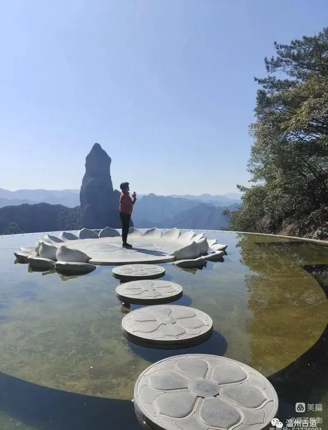 而南天顶前的大自然奇观一一观音峰(海拔919米,峰高200多米),这座世间最高的天然观音像,那就更令人毕恭毕敬了。群峰之上,端坐云间,双手合十,似在诵经祈福,惟妙惟肖,极为震撼,许多游人情不自禁顶礼膜拜,堪称神仙居经典完美之作。