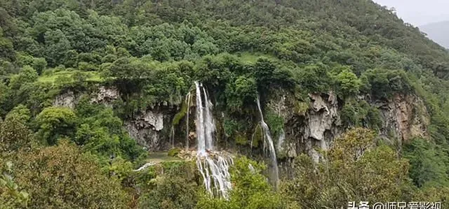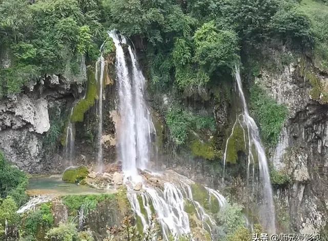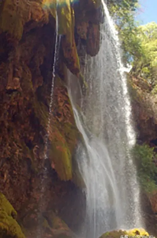 进入沙湾向云南堡村行驶,群山叠翠下,远远看见山谷里紫烟漫腾,令你有如进入了梦幻的仙景世界。它海拔2750米,瀑布高58米多,瀑布从山腰峡壁中挤出来,有夺路而出的勇猛,劈山救母的气概。真是“一涧飞瀑,碎琼乱玉”。 水出自半山腰,奔泻而下,跌落在中间的平台后,分为几路就势而下,秀丽无比。水帘在20多米处的平台上,一分为二地变得轻盈飘忽,宛然而妩媚。 附近的居民每年都有到此“转水”的习俗。