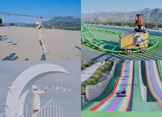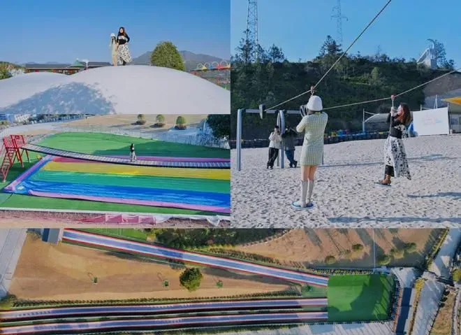 体验完游船后,还可以去游客区体验各种刺激的游乐项目。我个人比较喜欢的就是去走走铁索桥看一看南龙湾的全貌;我喜欢从起伏的彩虹滑道冲下坡的刺激。