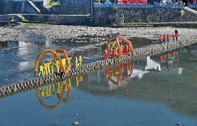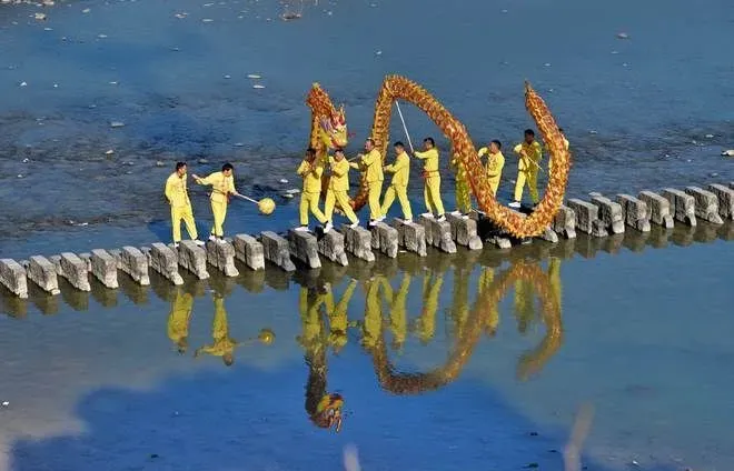 如果是农历二月二龙抬头的日子来到这里,你还会邂逅到仕阳被列入国家非物质遗产的碇步龙表演,表演者在碇步上舞龙,舞者用脚尖的步伐在高低不平的碇步上腾挪跳跃,伴随着锣鼓声,很有气势。