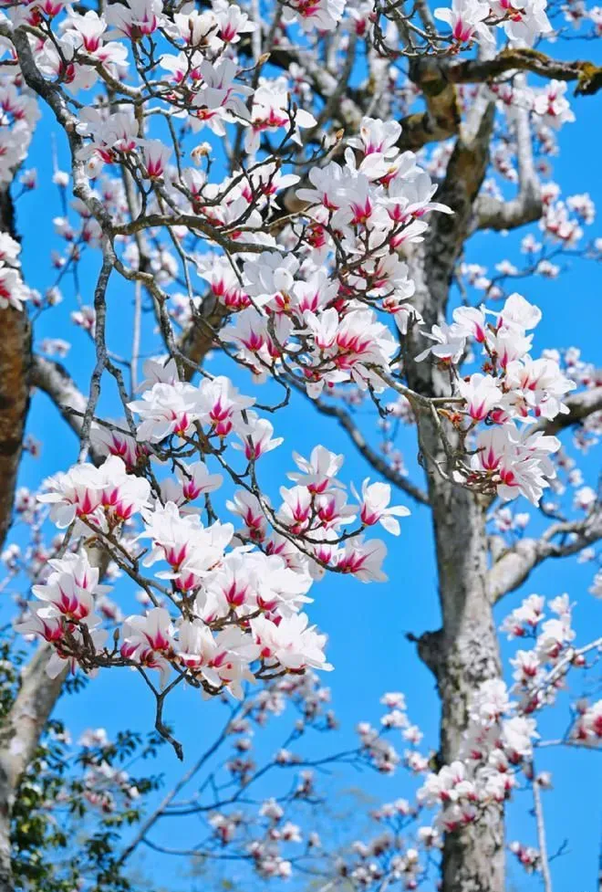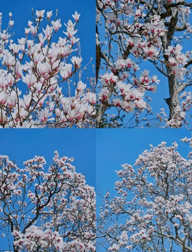 我们到的时候正值玉兰树盛花时节,站在树下抬头望,蓝天白云搭配上圣洁的白玉兰花,很是美妙。