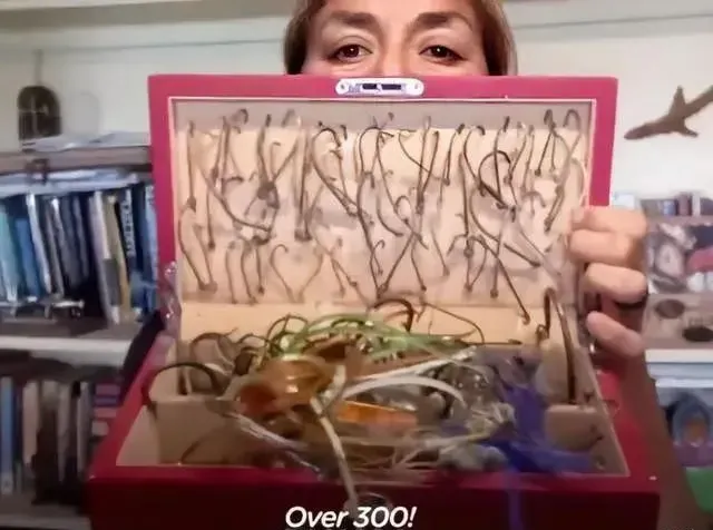 这些鱼钩,都被她好好地保存在一个盒子里。