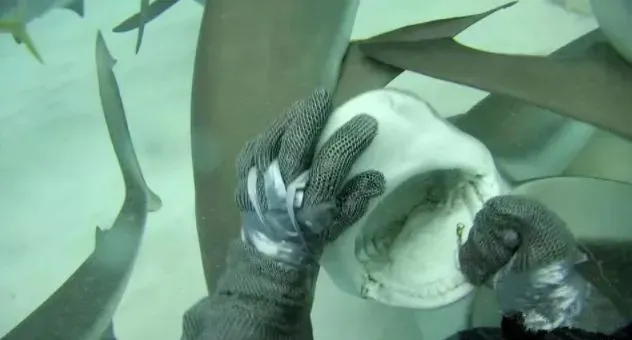 但同时,这个方法也很铤而走险,因为鲨鱼不是人类,它们不会完全配合,这个过程万一弄疼了它,它在挣扎过程中很可能会误伤到自己。
