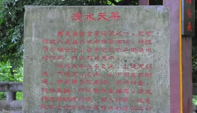 接铧嘴下游是拦截海洋河的拦河坝,大天平即拦河坝的右部,小天平为拦河坝的左部,大天平与小天平衔接成人字形(夹角108度),因二者原属湘江故道,稍有崩坏,则无滴水入渠。