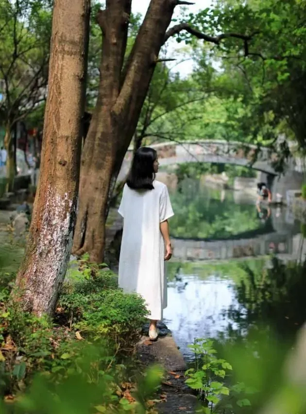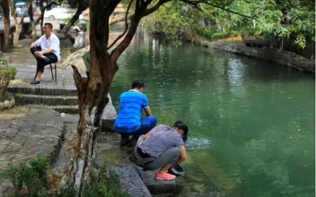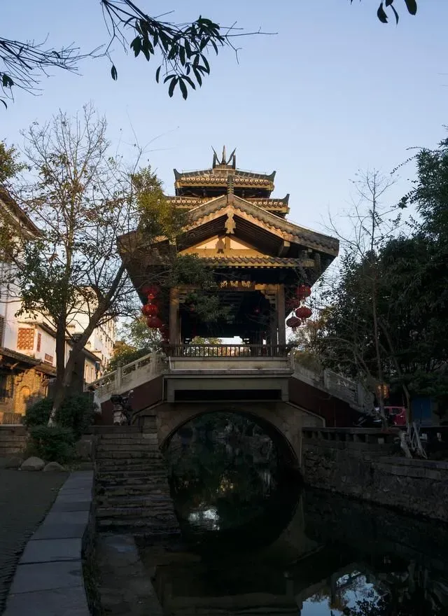 桥下的流水清澈而缓慢地流淌着,垂柳在微风下轻抚水面,千年古桥在倒影中闪闪发光,岸上的妇女们提篮洗衣,小朋友笑闹嬉戏,“小桥流水人家”的江南古镇画面,浮现在眼前,如此的真实,却又如此的梦幻,让人分不清是江南的水彩画,还是纳西的油画。