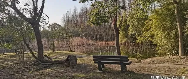 不管怎么说,米市渡松南郊野公园都是让人有惊艳之感的,这里有宽直的河流,有河畔原生状态的林莽,有大面积的苗圃植被,还有冬天里翻耕过的广袤田地。像是东北黑土地一样广袤的田地,在纵横的道路以及道路两侧碧绿的护道树的装饰下,像是巨大的艺术品一样供人观瞻。
