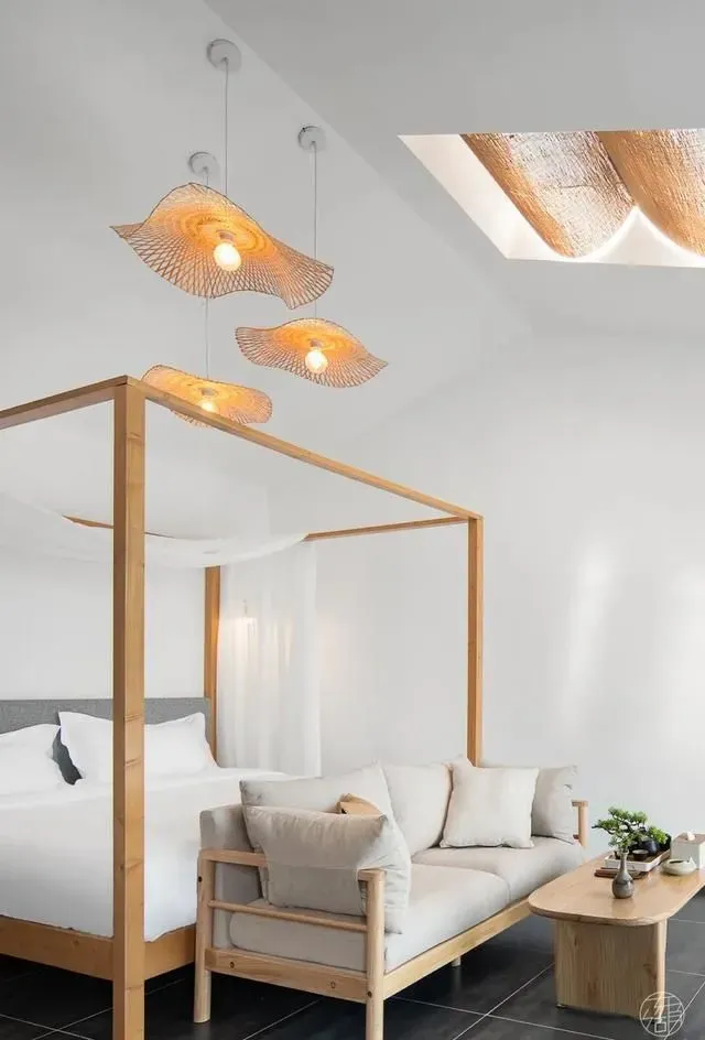 房内家具大多选择了木质,质感温润、细腻,为睡眠营造出宁静、舒适的氛围。