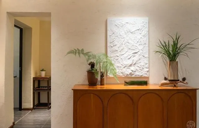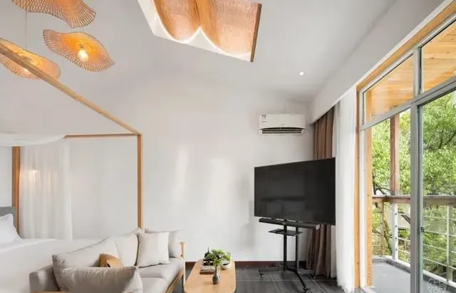 走上几级台阶,绕过一堵矮墙,便走入了「伴儿小院」的小天地中。 整洁的院子、洁白的楼房,组成了在大李村生活的标准想象。 大厅里,中央的暖炉烧得正旺,正好驱散初春零星的寒意,从入门的这一瞬间,便有种归家般的安心感。 书画、茶具在这里随处可见,看得出民宿主人对于中国风的喜爱。 恰到好处的摆放,不突兀、不张扬,营造出幽静的氛围,很适合饮茶小憩。 周掌柜爱植物,每个角落里都能发现绿意的存在,也正好调和的木质家具深沉的色调,为整体装饰增添一抹亮色。 就这样,「伴儿小院」完成了它的华丽转身,也成为了武汉市旅游民宿等级评定委员会拟认定的第一批武汉星级旅游民宿之一。 或许在这个匠人聚集的村落中,经营一间民宿也成为了一项创作—— 曾经院中匠人们那份纯粹的创作之心,在如今的民宿里依旧闪现着光芒。 顺带一提,本次评选中东湖风景区内共有5家民宿入选,其中五星级武汉旅游民宿2家:「东家西舍」、「东湖家·磨山驿」,四星级武汉旅游民宿1家:「知住东湖翠」、三星级武汉旅游民宿2家:「伴儿小院」、「树上行李」。 来东湖住宿,可以参考打卡哦。 回到住宿本身,旅客最关注和在意的,还是舒适的居住环境。 周掌柜在客房的设计上,也花了功夫,做到内敛而不失精致,简约而不失细节。