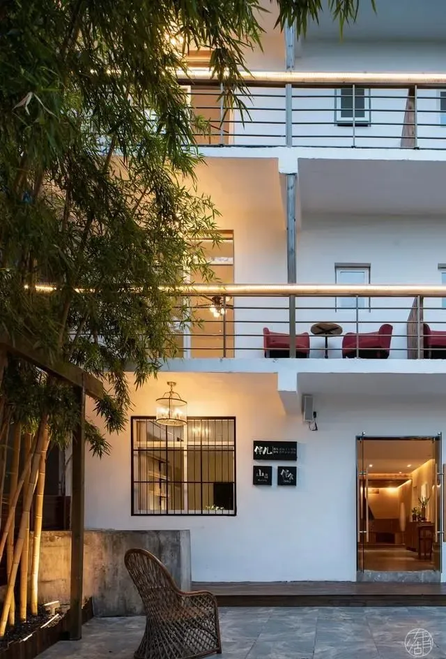 路过一栋四层小楼,墙壁被雨水洗刷得洁白、透亮,在烟雨朦胧里格外惹眼。脚步被这栋建筑吸引,走近观瞧,和这间名为「伴儿小院」的民宿完成了雨中的初见。