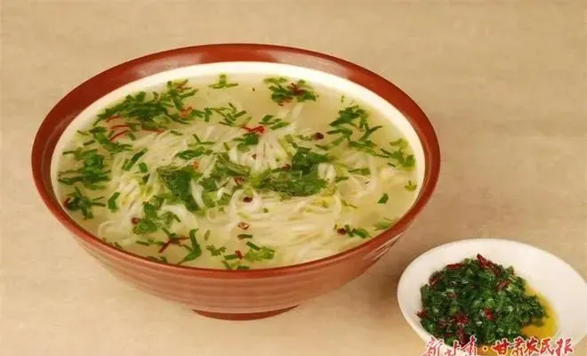 天水的浆水拌汤别具一格,其味酸,香辣、清香,入口回味无穷,并具有开胃之功效。做浆水拌汤的浆水菜多以苦苣为佳,白菜,芹菜也可。