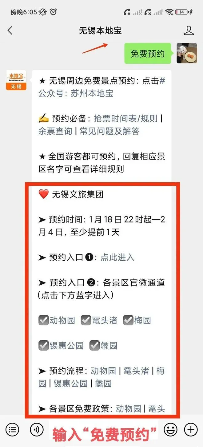 在聊天对话框回复【免费预约】/【0元门票】