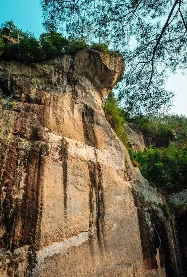 沿小赤壁继续向东走,还能看见酷似大腹便便人像的“大肚岩”。