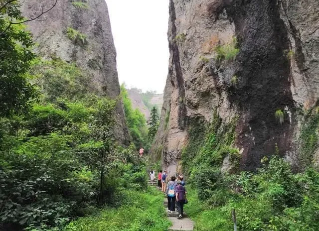 这是仙都较冷门的景点,还很原始。远望时,峰峦如聚的芙蓉峡,犹如莲花盛开在田园上;而走近时,你会发现这里,两面陡壁耸峙,俨如一条通天弄堂。