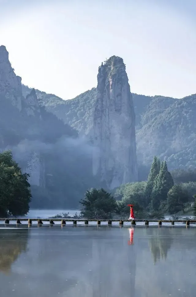 每一个到仙都的人必到朱潭山,这里有条仙堤,是出大片的绝佳摄影地。