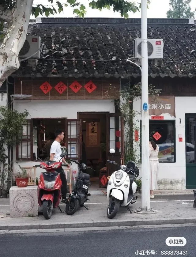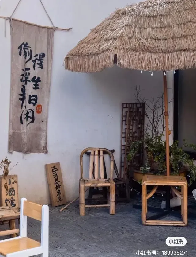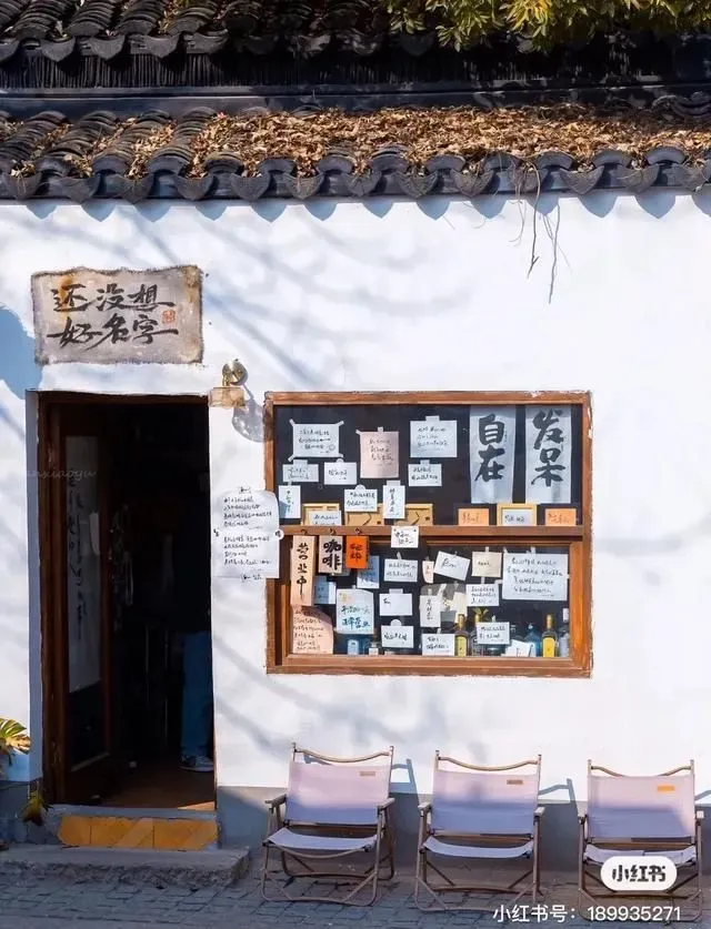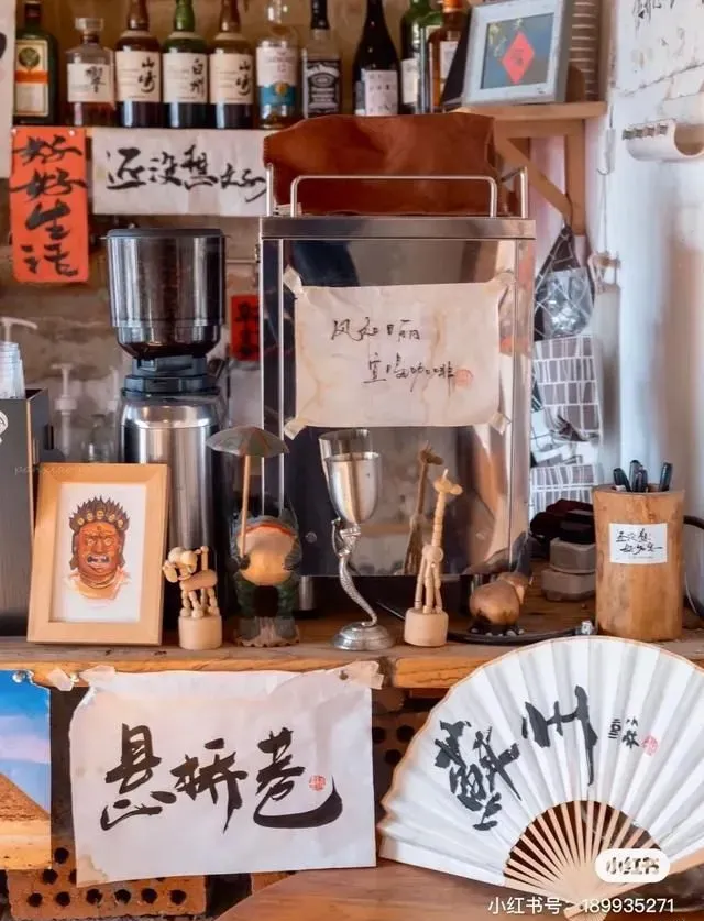 沿街有不少咖啡馆,有一家叫【还没想好名字】,光听名字就很佛系,整个小屋的设计也是在老房子的基础上进行改造,保留着古色古香的味道,乍一看以为是杂货铺,走近一看才别有洞天。