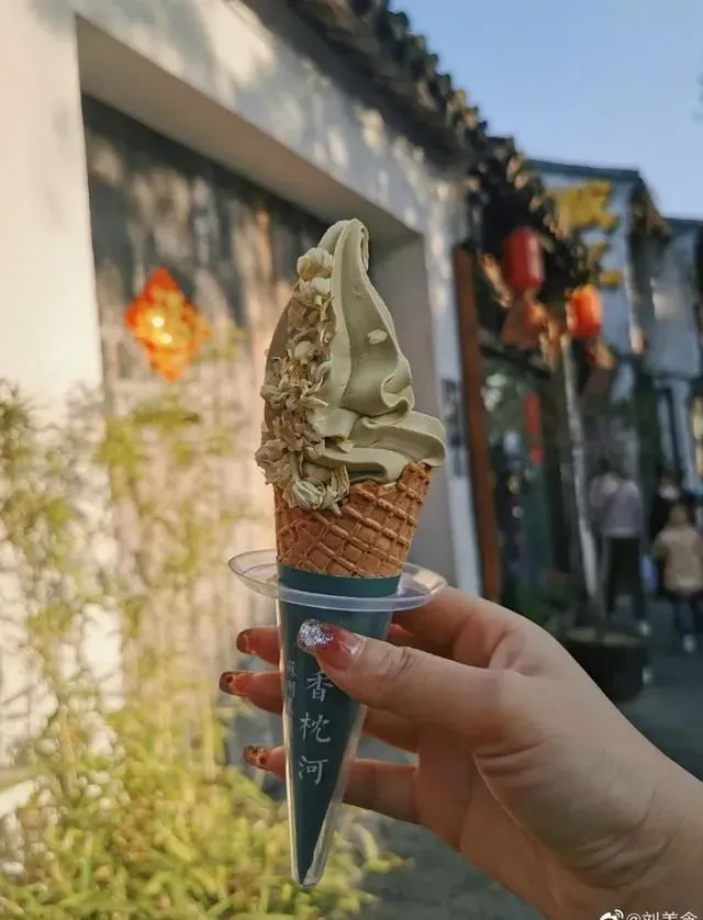 【茉香枕河】的茉莉茶冰淇淋和 【梅月轩】的梅花糕同样占据着十二宫格的两席之地,把茉莉花做成冰淇淋这是属于苏州人的浪漫吧。