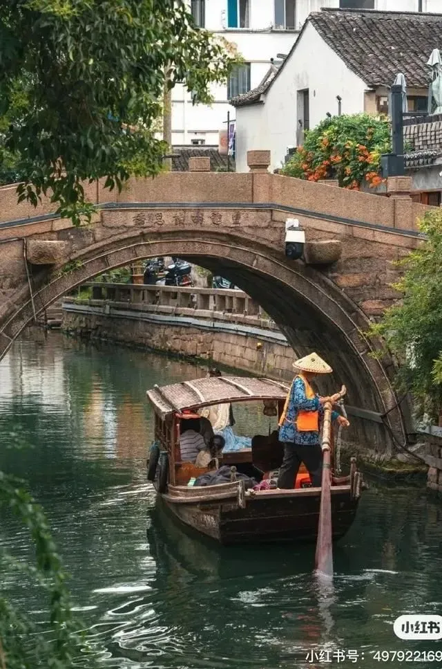 小桥流水,摇橹乌篷船从面前经过,水面荡漾着云彩与黑瓦白墙,好喜欢这种慢悠悠的江南小镇呀。如果还没定好春日出游第一站去哪,不如先跟着刘美含去平江路看看!