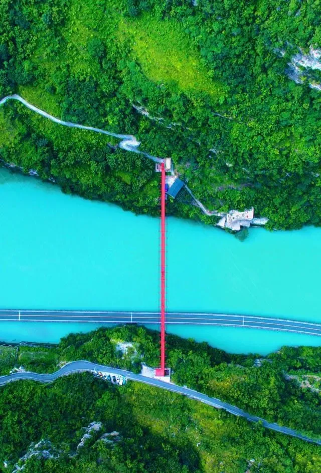 这是一条连接凉山和乐山的友谊之桥,从桥的中间隔开,一半属于凉山,一半属于乐山。据说,从这里走过的情侣,都会得到大山的祝福。