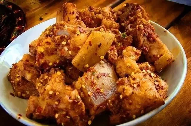 这边的炸洋芋也是一绝,味道麻辣,洋芋炸到酥脆,加上其他的配菜搭配,最后加点小米辣在上面,巴适得板!