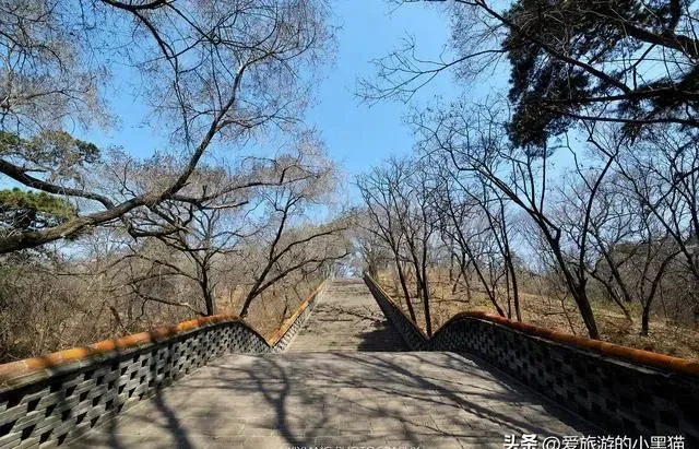 神道的尽头,根据地势修建了一百单八磴,台阶上下两端分别建有石桥。清福陵的一百零八蹬在明清皇陵中是独一无二的建筑形式,其来源相传与三十六天罡星和七十二地煞星有关。天罡星和地煞星都是不吉祥的星宿,一百单八蹬的寓意是将天罡星和地煞星踩在足下,以保护福陵平安无事。