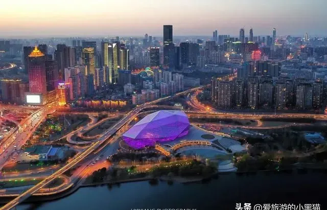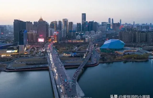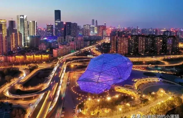 傍晚时分,华灯初上。浑河岸边的盛京大剧院亮起了五彩的灯光,璀璨夺目,犹如一颗晶莹的大钻石与浑河相映生辉,后方则是沈阳五里河的CBD。