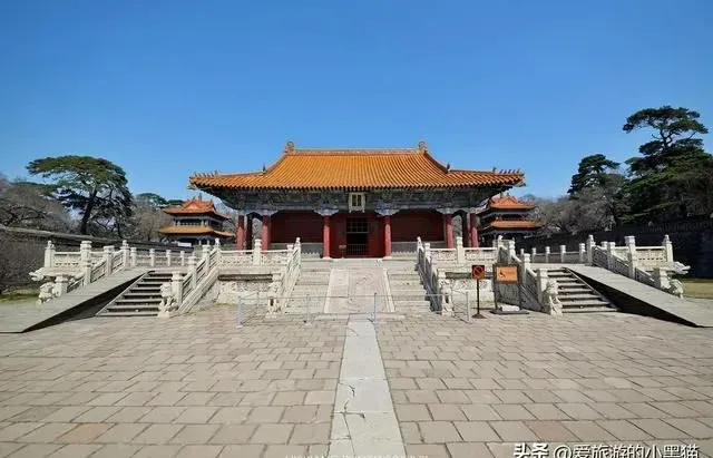 方城中央的隆恩殿,即享殿,是整个陵区的主体建筑,坐落在须弥座式大台基上。隆恩殿始建于清朝入关前,后来在康熙年间重建,殿内供奉清太祖努尔哈赤及孝慈高皇后叶赫那拉氏的神牌,是举行祭祀典礼的场所,两侧有东、西配殿。