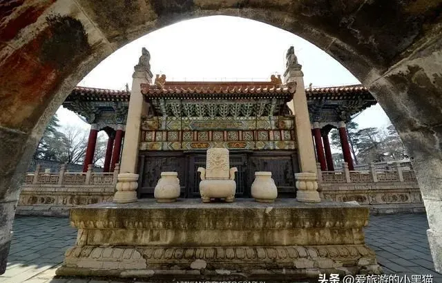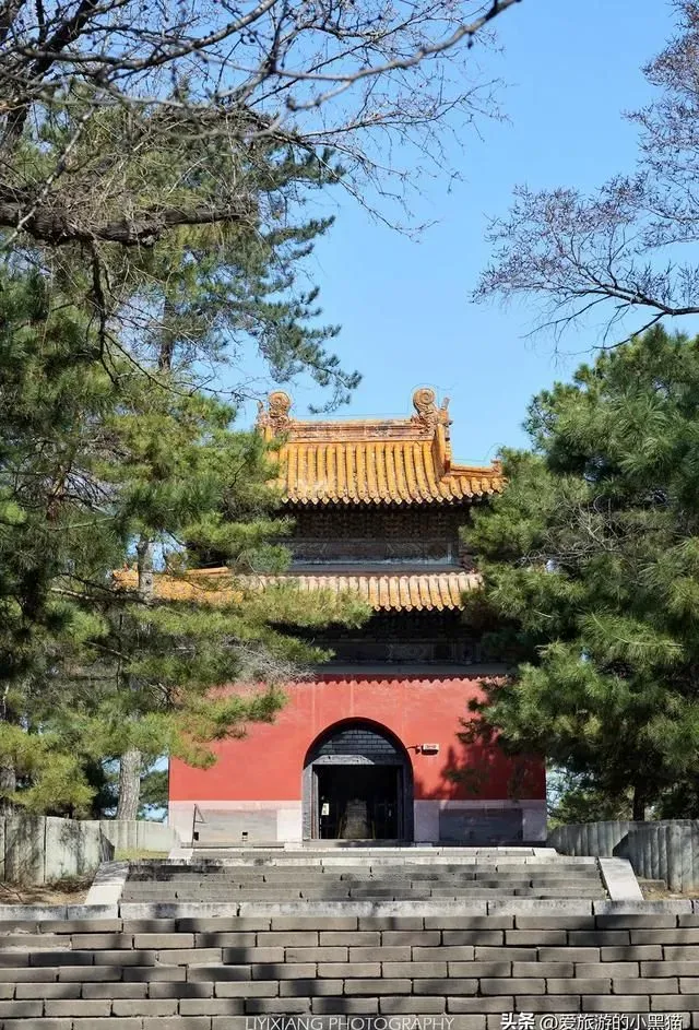 登上一百单八磴,就到了碑亭。根据清代陵寝制度,神道与隆恩门之间必须作隔断,名曰“一眼望不断”,寓意大清江山万世一系,所以修建了这座碑亭。