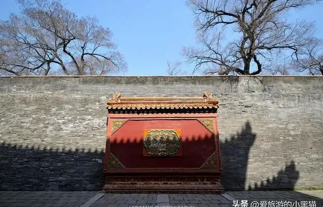 正红门东西两侧各有一座琉璃影壁,因它的位置如同衣服的袖子开在两边,所以也称“袖壁”。又因为上面镶有五彩琉璃云龙,所以又称“龙砖看壁”。袖壁两边是围绕陵寝的风水红墙,为清雍正年间加建。