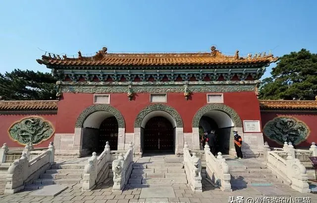 清福陵的正红门,亦叫作“大红门”,三间单檐歇山式琉璃顶建筑。中间是“神门”,是供墓主神灵出入的门户,平日不开,只是在大祭时给抬祭品的官员出入,其他人不得行走;东侧的是“君门”,是皇帝祭陵时出入的门;西侧的是“臣门”,是祭祀时大臣走的门。如今游客进入景区,走的是“君门”。