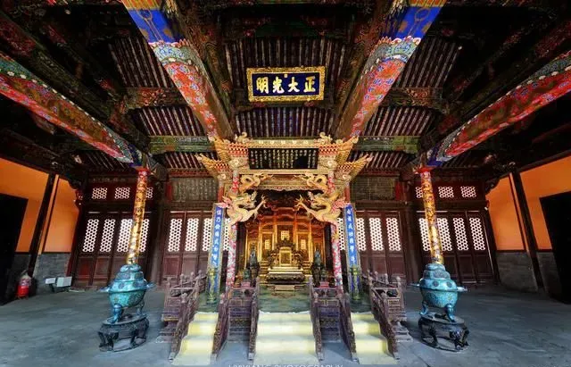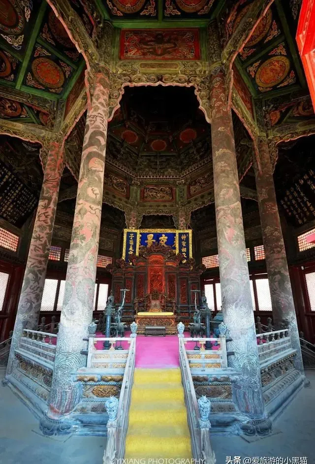 走进沈阳故宫东路,最引人注目的就是位于北侧正中的大政殿,这也是整个宫殿群中最先完成的建筑。从远处看,八角重檐的大正殿外型好似一座双层屋顶的亭子,俗称八角殿,正规的叫法应是“八角重檐攒尖顶大木架结构”建筑。