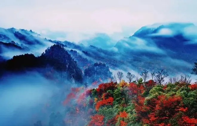 春赏杜鹃、夏纳清凉秋品红叶、冬览雾凇秋季的光雾山更是万山红遍是“色比桃花艳, 秋如春意浓”的华丽色板也成就了“亚洲最长天然红地毯” 的美誉