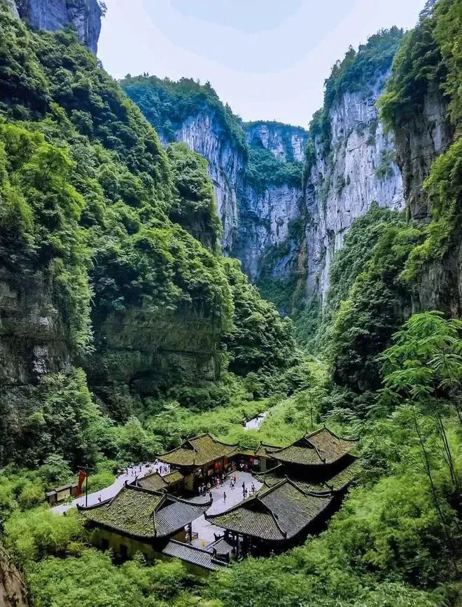 龙缸天坑的坑壁倾斜幅度近90度这种直上直下的形态在世界上极为罕见享有“天下第一缸”的美誉奇缸、奇洞、奇峡、奇峰与四周的磅礴山水交相辉映既是一座神秘的地质博物馆又是一幅壮美的山水画卷