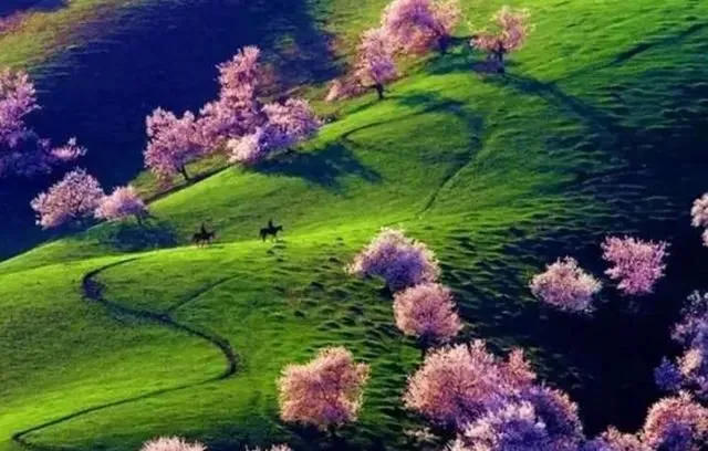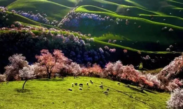 在新疆伊犁,距伊宁市205公里,距新源县32公里,距吐尔根乡2公里,离218国道不远,有一片3万亩的原始野生杏树林,每年4月开始,这里的杏花绽放,很美!宛若一抹春天的灿烂和恬静,如同童话般的美妙、久久飘香和精彩。
